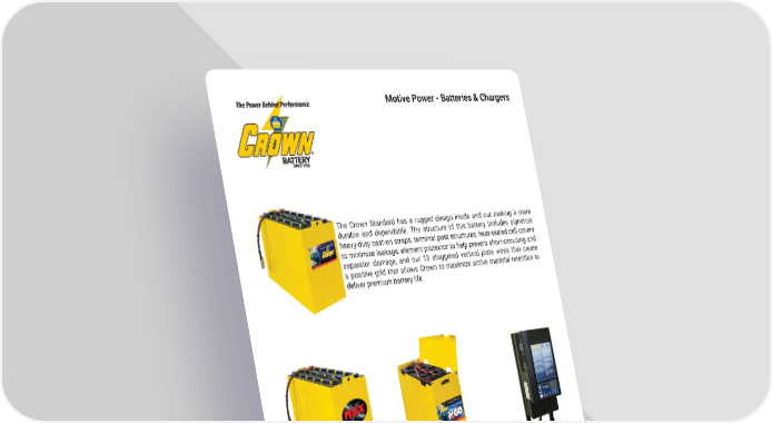 Motive Power - Batteries & Chargers Our goal at Alta Motive Power is to provide you with the industry’s best industrial motive power battery or fuel solutions, including lift truck lead acid, lithium-ion batteries, and hydrogen fuel cells� We start with a discovery process to determine which power source is right for you, then compare the bene昀椀ts of different manufacturers� Our proprietary modeling software lets us engineer the right power solution for your unique needs� We help you reduce your total cost of ownership and increase your productivity and performance� The Crown Standard has a rugged design inside and out making it more durable and dependable� The structure of this battery includes signature heavy-duty cast-on straps, terminal post structures, heat-sealed cell covers to minimize leakage, element protector to help prevent short-circuiting and separator damage, and our 13 staggered vertical plate wires that create a positive grid that allows Crown to maximize active material retention to deliver premium battery life� Max delivers the reliability and H2GO can simply be described Access Power House Charger tough, long-lasting performance in two sentences� Less water� is designed for wall or rack of traditional 昀氀at-plate batteries with a staggered vertical plate Less Maintenance. Our modi昀椀ed mounting, it has a durable case alloy reduces gassing which that is coated and textured that withstands the rigors improves water retention� of deep cycling services with a powder polyester 昀椀nish to protect against corrosion� and high-rate discharge� mh�altg�com 75