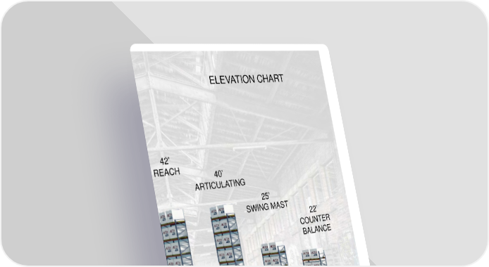 Alta Material Handling Catalog New York Metro 2026 Page 36 Page 3835 mh � altg � com 22’ COUNTER BALANCE 25’ SWING MAST 40’ ARTICULATING 42’ REACH ELEVATION CHART