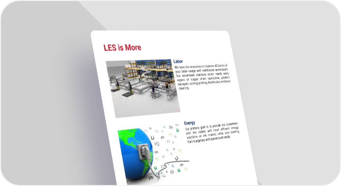 2 mh�altg�com Labor We have the resources to improve all facets of your labor usage with warehouse automation � Our automated solutions touch nearly every aspect of supply chain operations, product transport, sorting, picking, distribution, and even cleaning � Energy Our primary goal is to provide our customers with the safest and most efficient energy solutions on the market, while also meeting their budgetary and operational needs � Space Our space solutions will help you best use every cubic inch of your building, with customizable, tailor-made vertical and horizontal solutions � L ES is More