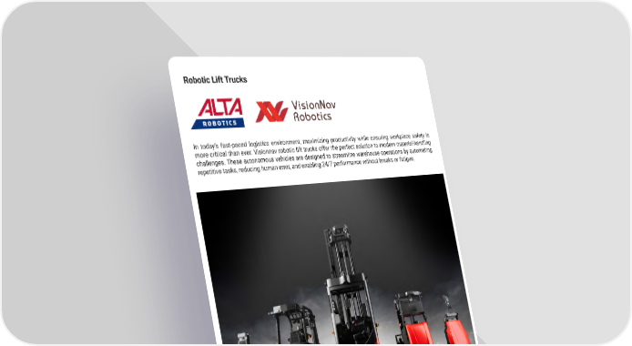 8 mh�altg�com Robotic Lift Trucks In today’s fast-paced logistics environment, maximizing productivity while ensuring workplace safety is more critical than ever � Visionnav robotic lift trucks offer the perfect solution to modern material-handling challenges � These autonomous vehicles are designed to streamline warehouse operations by automating repetitive tasks, reducing human error, and enabling 24/7 performance without breaks or fatigue �