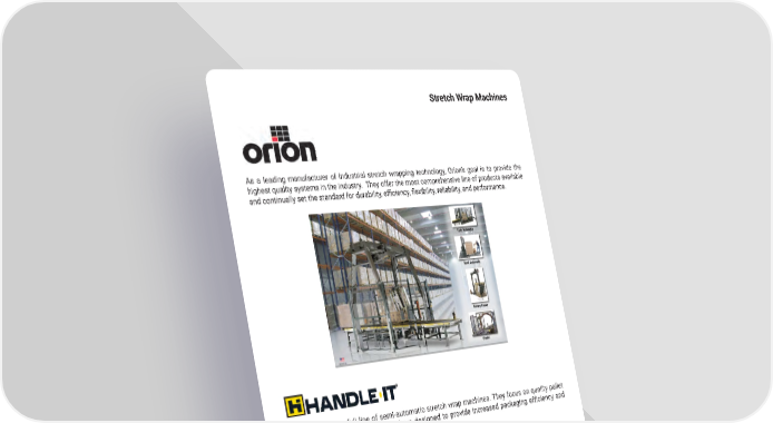 Stretch Wrap Machines As a leading manufacturer of industrial stretch wrapping technology, Orion’s goal is to provide the highest quality systems in the industry� They offer the most comprehensive line of products available and continually set the standard for durability, e昀케ciency, 昀氀exibility, reliability, and performance. Handle It offers a full line of semi-automatic stretch wrap machines� They focus on quality pallet wrappers at an excellent value and are designed to provide increased packaging efficiency and wrap consistency� mh�altg�com 17