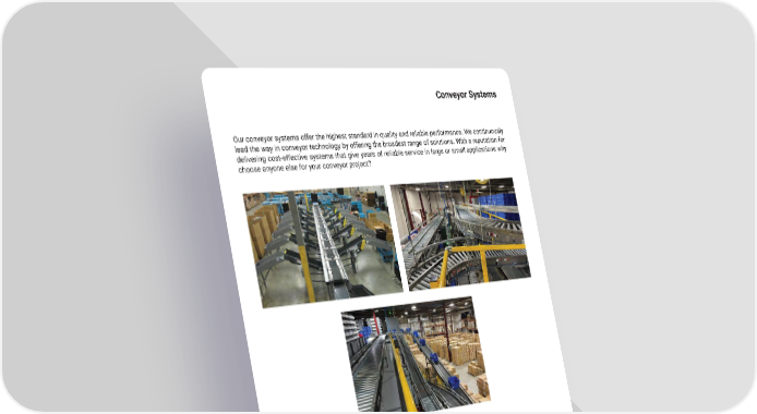 Conveyor Systems Our conveyor systems offer the highest standard in quality and reliable performance� We continuously lead the way in conveyor technology by offering the broadest range of solutions� With a reputation for delivering cost-effective systems that give years of reliable service in large or small applications why choose anyone else for your conveyor project? Bene昀椀ts of Conveyors: • Lower handling costs for repetitive tasks • High performance and quality • Integrated material 昀氀ow controls • E昀케ciently moving products between processes • Accumulation without line pressure • Merging and diverting for balanced workload • Latest controls technology mh�altg�com 27