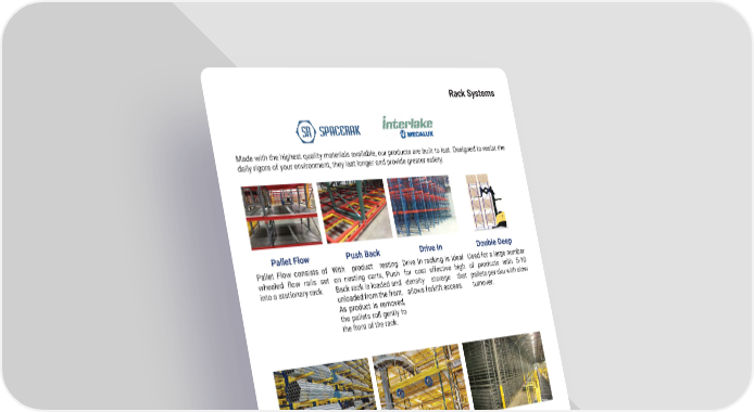Rack Systems Made with the highest quality materials available, our products are built to last� Designed to resist the daily rigors of your environment, they last longer and provide greater safety� Pallet Flow Push Back Drive In Double Deep Pallet Flow consists of With product resting Drive In racking is ideal Used for a large number wheeled 昀氀ow rails set on nesting carts, Push for cost effective high of products with 5-10 into a stationary rack� Back rack is loaded and density storage that pallets per sku with slow unloaded from the front� allows forklift access� turnover� As product is removed, the pallets roll gently to the front of the rack� Cantilever Racks Pick Modules AS/RS Cantilever racks use arms to hold Ideal for ful昀椀llment centers, Pick They offer Automated Storage product, eliminating the need for Modules combine dynamic rack and Retrieval System solutions a front column� It is ideal for long, systems and conveyors for an in Unit Load or Mini Load bulky or oddly shaped loads� e昀케cient way to ful昀椀ll multiple systems that are PE engineered Easy loading and unloading SKU customer shipments in a and designed to project lowers handling time and cost� timely and accurate manner� speci昀椀cations and requirements. mh�altg�com 15