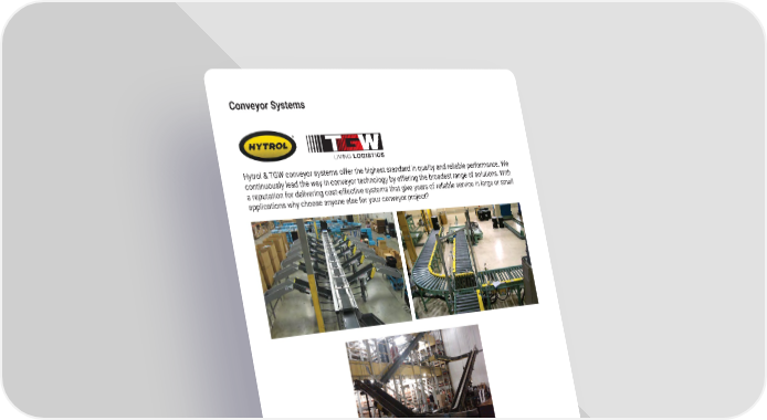 16 mh�altg�com Conveyor Systems Hytrol & TGW conveyor systems offer the highest standard in quality and reliable performance � We continuously lead the way in conveyor technology by offering the broadest range of solutions � With a reputation for delivering cost-effective systems that give years of reliable service in large or small applications why choose anyone else for your conveyor project? Benefits of Conveyors: • Lower handling costs for repetitive tasks • High performance and quality • Integrated material flow controls • Efficiently moving products between processes • Accumulation without line pressure • Merging and diverting for balanced workload • Latest controls technology