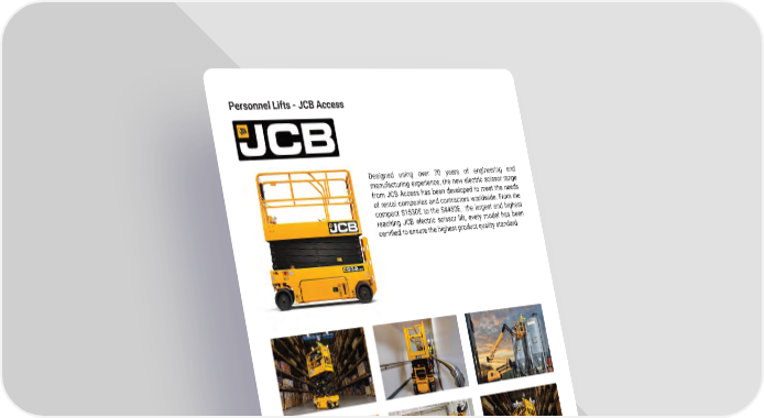 68 mh�altg�com Personnel Lifts - JCB Access Designed using over 70 years of engineering and manufacturing experience, the new electric scissor range from JCB Access has been developed to meet the needs of rental companies and contractors worldwide � From the compact S1530E to the S4450E, the largest and highest reaching JCB electric scissor lift, every model has been certified to ensure the highest product quality standard.