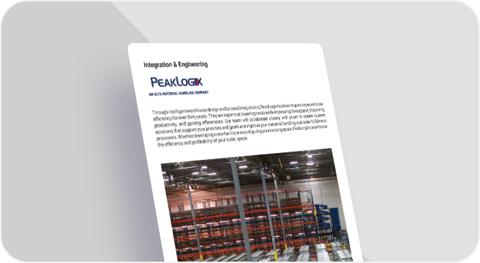 4 mh�altg�com Integration & Engineering Through intelligent warehouse design and tailored integrations, PeakLogix has been improving warehouse efficiency for over thirty years. They are experts at lowering costs while increasing throughput, improving productivity, and gaining efficiencies. Our team will collaborate closely with yours to create custom solutions that support your priorities and goals and improve your material handling and order fulfillment processes. Whether developing a new facility or reconfiguring your existing space, PeakLogixcan enhance the efficiency and profitability of your cubic space.