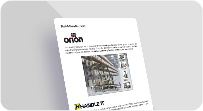 16 mh�altg�com Stretch Wrap Machines As a leading manufacturer of industrial stretch wrapping technology, Orion’s goal is to provide the highest quality systems in the industry � They offer the most comprehensive line of products available and continually set the standard for durability, efficiency, flexibility, reliability, and performance. Handle It offers a full line of semi-automatic stretch wrap machines � They focus on quality pallet wrappers at an excellent value and are designed to provide increased packaging efficiency and wrap consistency �
