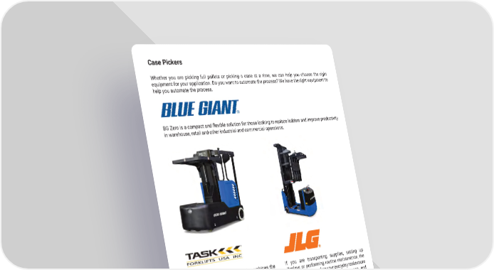 52 mh�altg�com Case Pickers Whether you are picking full pallets or picking a case at a time, we can help you choose the right equipment for your application � Do you want to automate the process? We have the right equipment to help you automate the process � If you are transporting supplies, setting up displays or performing routine maintenance, the JLG Stock Picker makes your everyday tasks more efficient. Stock up on safety, performance, and productivity. Get your work done more efficiently This new elevation work vehicle combines the capabilities of aerial work platforms, order pickers, and tuggers into a versatile performer � BG Zero is a compact and flexible solution for those looking to replace ladders and improve productivity in warehouse, retail and other industrial and commercial operations �