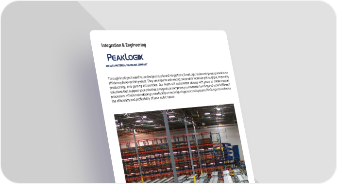 4 mh�altg�com Integration & Engineering Through intelligent warehouse design and tailored integrations, PeakLogix has been improving warehouse efficiency for over thirty years. They are experts at lowering costs while increasing throughput, improving productivity, and gaining efficiencies. Our team will collaborate closely with yours to create custom solutions that support your priorities and goals and improve your material handling and order fulfillment processes. Whether developing a new facility or reconfiguring your existing space, PeakLogix can enhance the efficiency and profitability of your cubic space.
