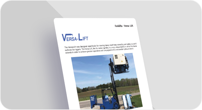 39 mh � altg � com The Versa-Lift was designed specifically for moving heavy machinery smoothly and safely on solid surfaces for riggers. The Versa-Lift, like its name signifies, is a very unique forklift in which the frame extends in order to achieve greater capacities and is equipped with a removable hydraulic boom � Forklifts - Versa- Lift