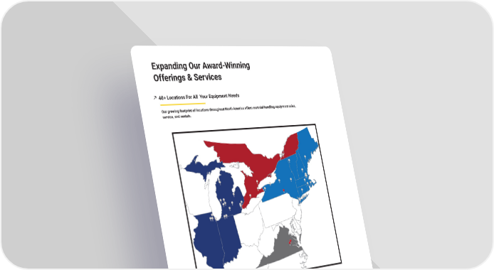 Expanding Our Award-Winning Offerings & Services 40+ Locations For All Your Equipment Needs Our growing footprint of locations throughout North America offers material handling equipment sales, service, and rentals. CURRENTLCURRENTLYY IN 42 LOCA IN 42 LOCATIONSTIONS Moving What Matters Most Midwest Regions Northeast Region Optimize your operations with YIT Region Alta Material Handling. PeakLogix Call us to learn how. 800.261.9642 PAGE 10